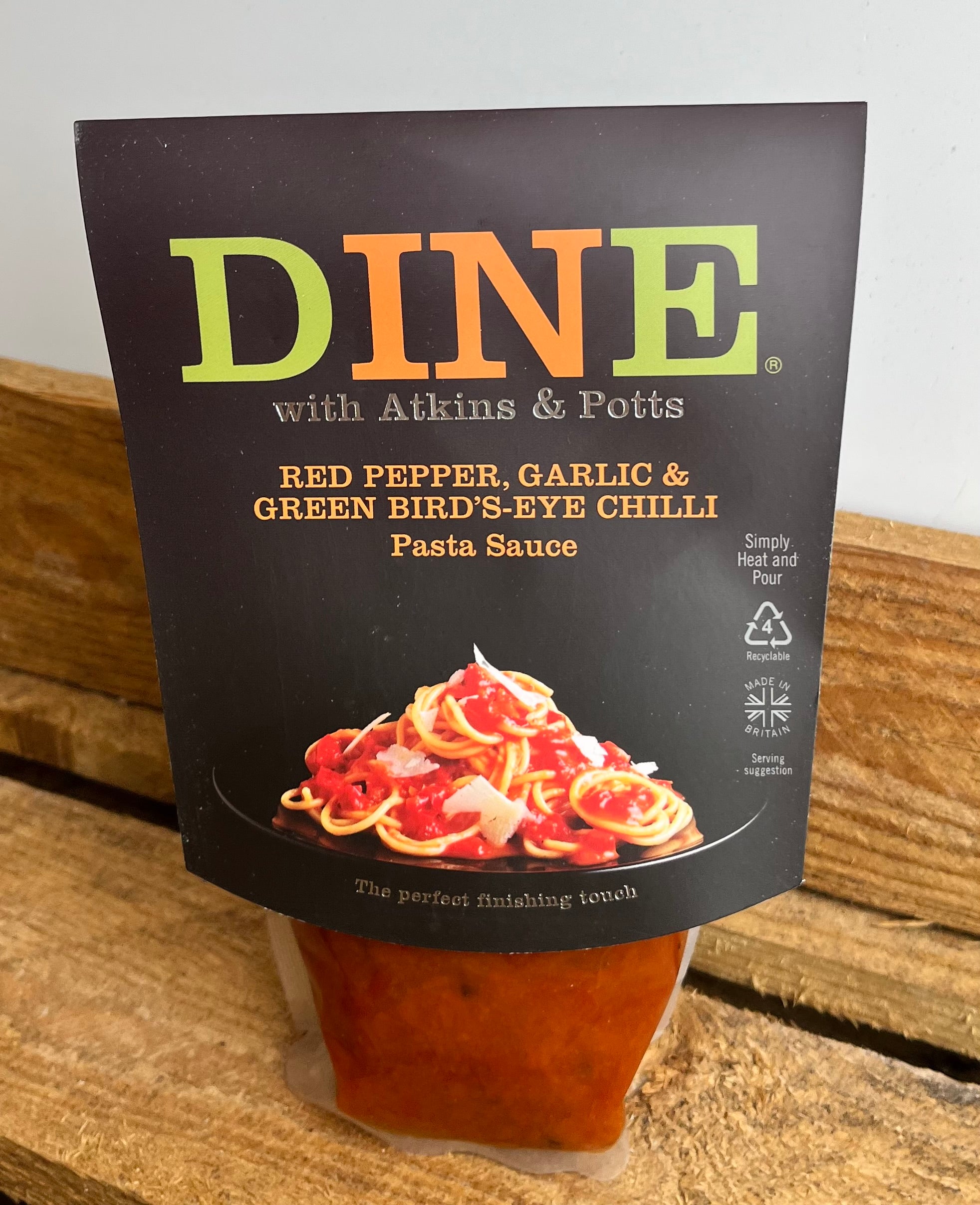 Dine in with Atkins & Potts Red Pepper, Garlic & Green Birds Eye Chilli Pasta Sauce - 350g